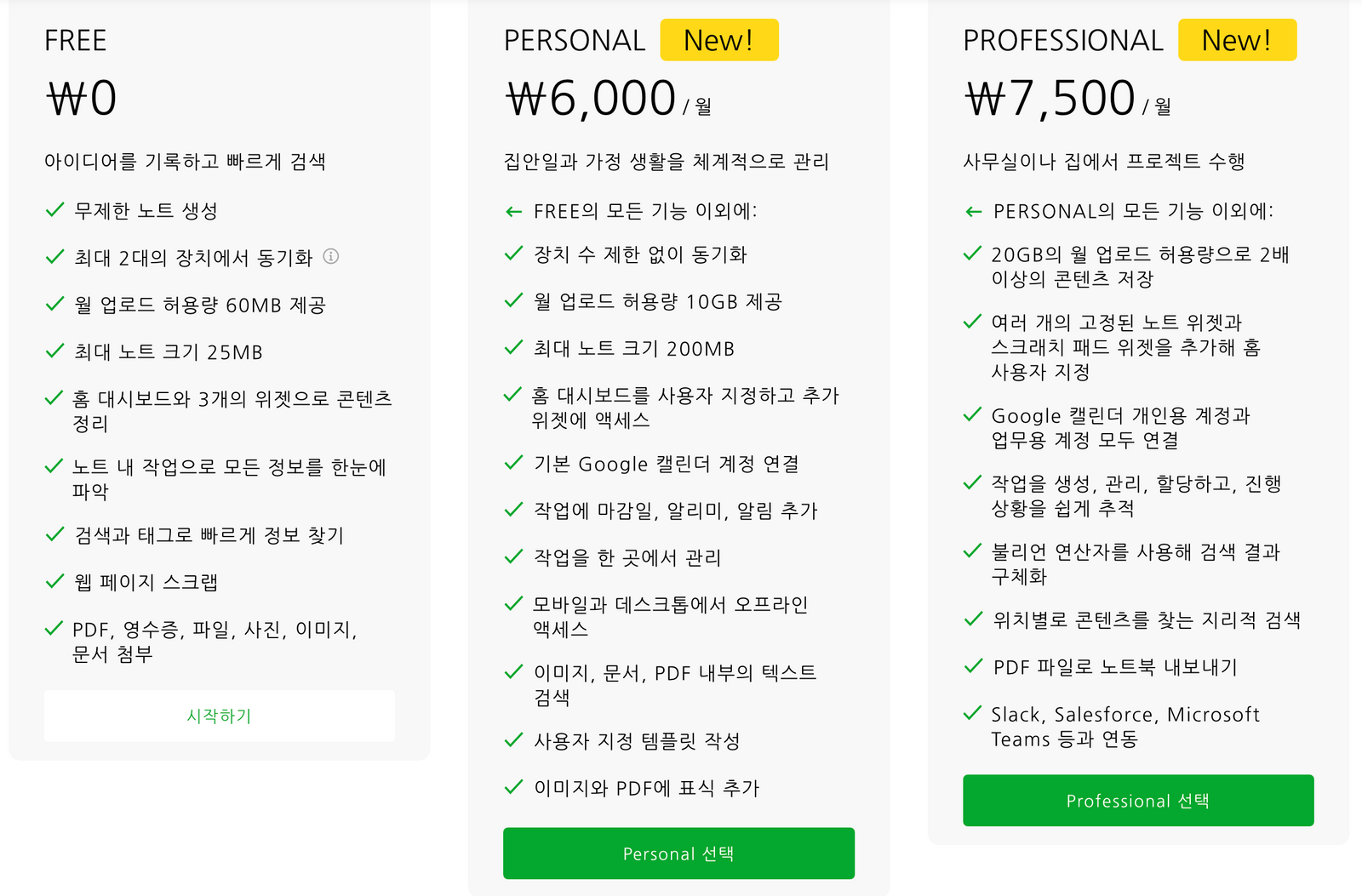에버노트에서 이번에 새로운 요금제 출시 및 개편을 했습니다. 기존 무료요금제인 베이직과 유료요금제인 프리미엄 요금제에 추가로 프로페셔널 요금제를 추가하였으며, 기존 무료인 베이직요금제를 프리로 프리미엄 요금제의 이름을 퍼스널 요금제로 변경하였습니다.