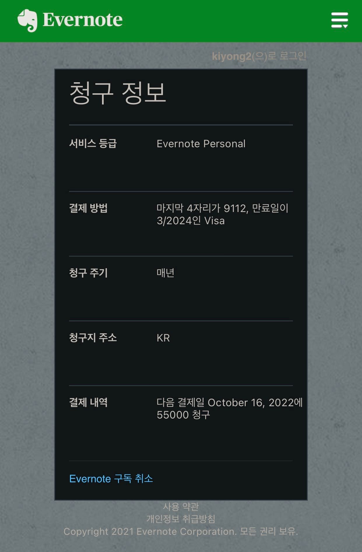 에버노트 연장을 해야하는 때가 되어 미리미리 결제방법을 체크 해놓았었는데, 드디어 결제가 되었습니다.