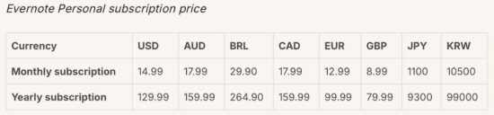 달러 가격은 후덜덜 하다. 출처:Evernote Blog