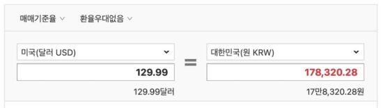약 178,000원이라는 가격이 나옵니다.(10월18일 현재) 정말이지 실로 엄청난 가격입니다. 저는 울며 겨자먹기로 원화로 결제를 하였고, 약 10만원이라는 금액이 청구가 되었습니다.
